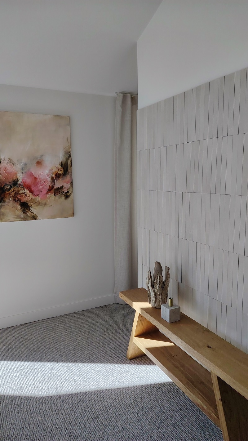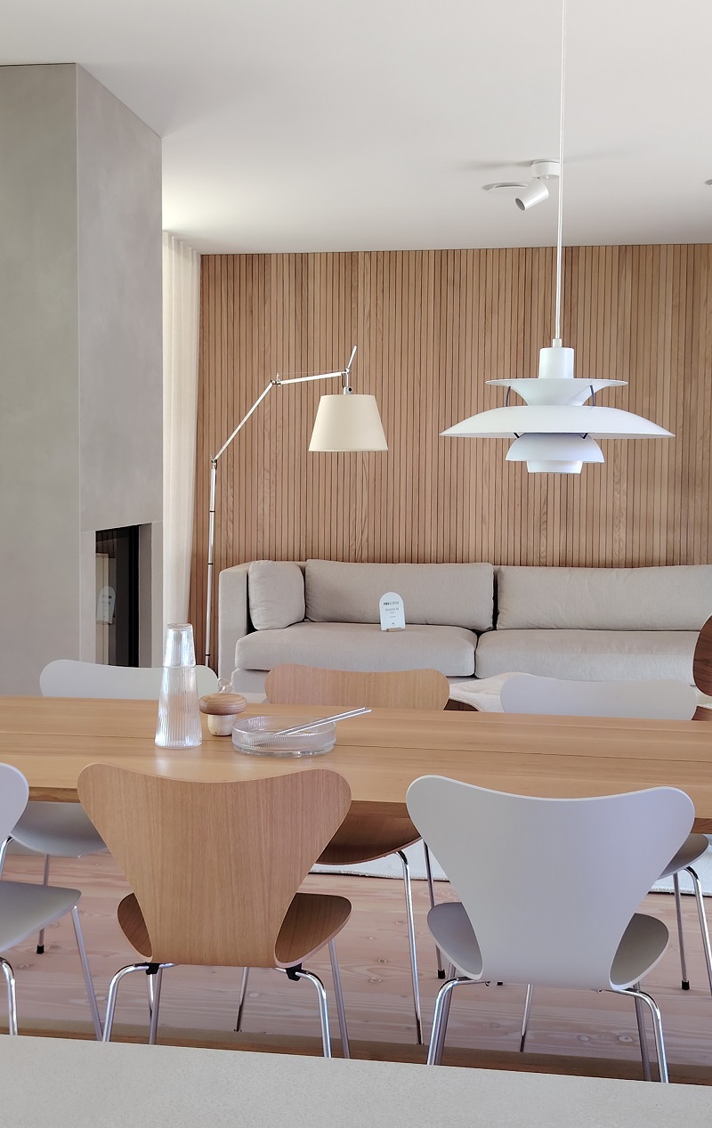 Sisustustrendeissä jatkuu vaaleiden ja luonnonläheisten sävyjen suosio. Valkoinen, vaalea puu ja hiekan värit muodostavat sisustuksen pohjan, joita rytmitetään maanläheisillä terrakotan ja sinisen sävyillä. Lopputuloksena on lämmin, rauhallinen ja ajaton tunnelma, joka sopii erinomaisesti ympäröivään maisemaan ja ekologiseen teemaan.