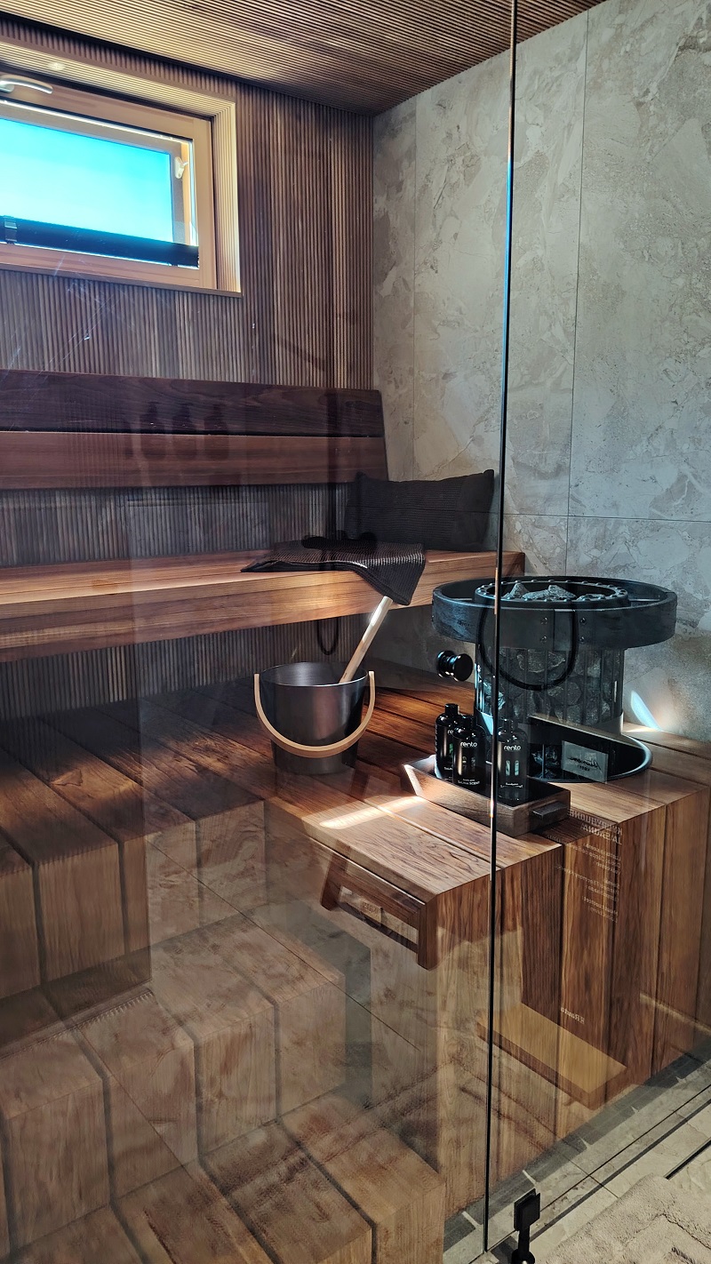 Saunat on rakennettu talojen yhteyteen, usein omalla sisäänkäynnillä. Useissa kohteissa näkyy vaikutteita perinteisistä suomalaisista saunoista, mikä yhdistää modernin asumisen kulttuuriperintöön.
