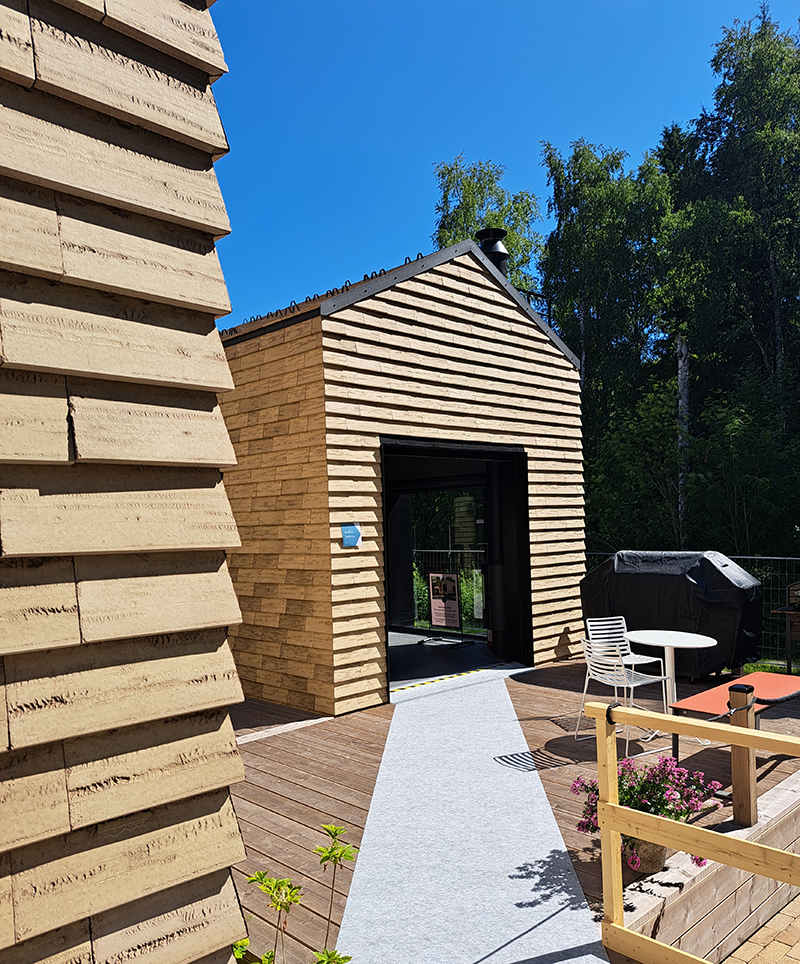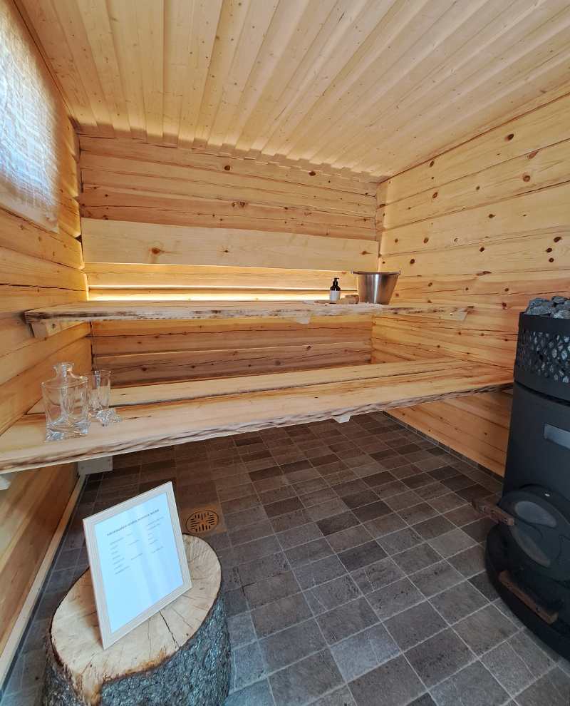 Kaksikerroksinen sauna on saanut inspiraationsa perinnesaunoista. Tämä sauna on nähtävä omin silmin!