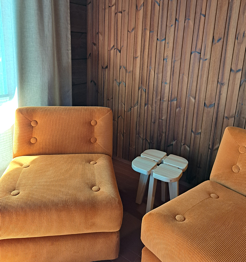 Saunan pukuhuone vie ajatukset 70-luvulle.