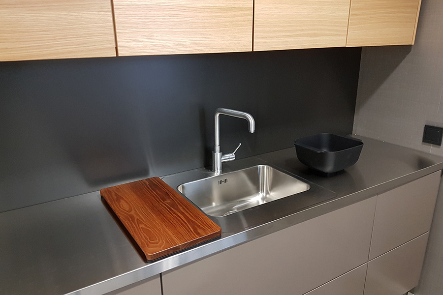 Muista tilata terästasoon valmis aukko hanalle tai lisäreiät saippua-annostelijalle tai astianpesukoneen venttiilille - ne kuuluvat tason hintaan. Seitsikko-pesupöytiin saa halutessaan lisämaksusta yhden liesiaukon keittotasolle.
