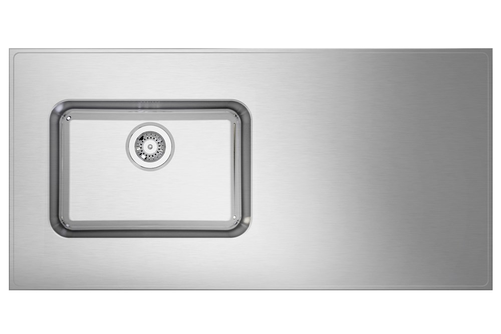 Stalan L-Seven-tiskipöytä on hyvä valinta sekä keittiöön että kodinhoitohuoneeseen. Terästaso isolla altaalla on huoleton käyttää. Isossa altaassa hoituu keittiön puolella suurien patojen ja kattiloiden sekä uuninpeltien tiskaaminen, kodinhoitohuoneessa pikkupyykin tai kumisaappaiden pesu.