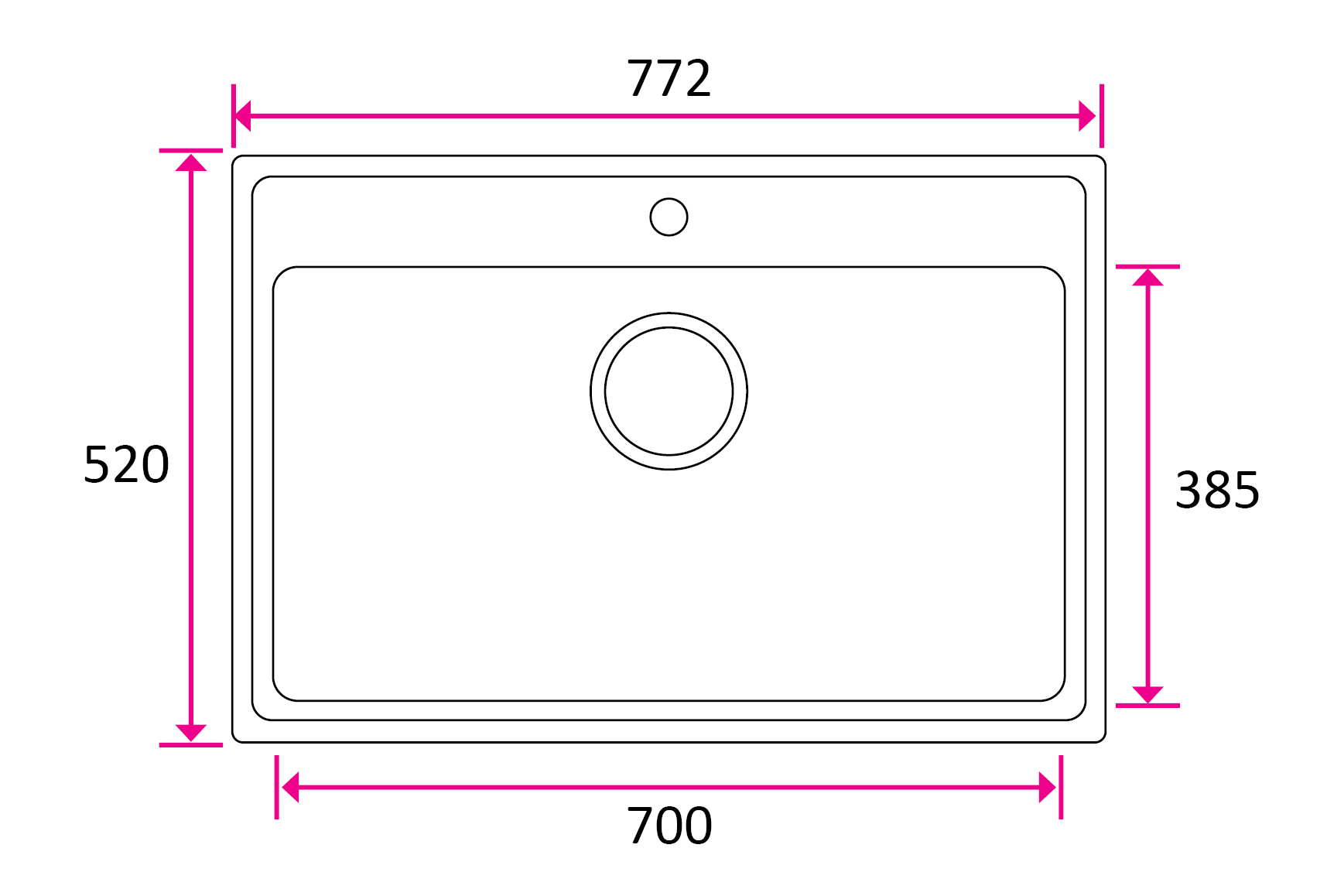 ONE-T70 on suuri hana-alueellinen allas, joka sopii 80 cm tai suurempaan kaappiin. ONEssa tilan hyödyntäminen on maksimoitu, mikä lisää keittiön toiminnallisuutta.