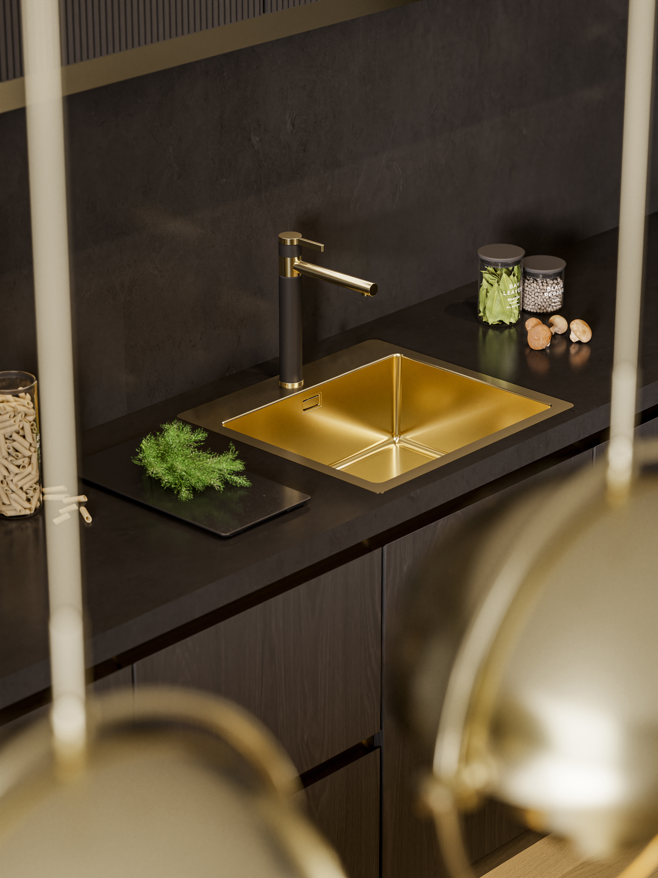 MONARCH-allas yhdistää huipputason ominaisuudet ja edistyksellisen pintakäsittelyn, joka antaa altaalle ainutlaatuisen kullanvärisen viimeistelyn. Vaativien käyttäjien tarpeisiin suunniteltu allas korostaa puhdaslinjaista, modernia muotoilua ja tuo keittiöön ajattoman tyylikkään ilmeen.