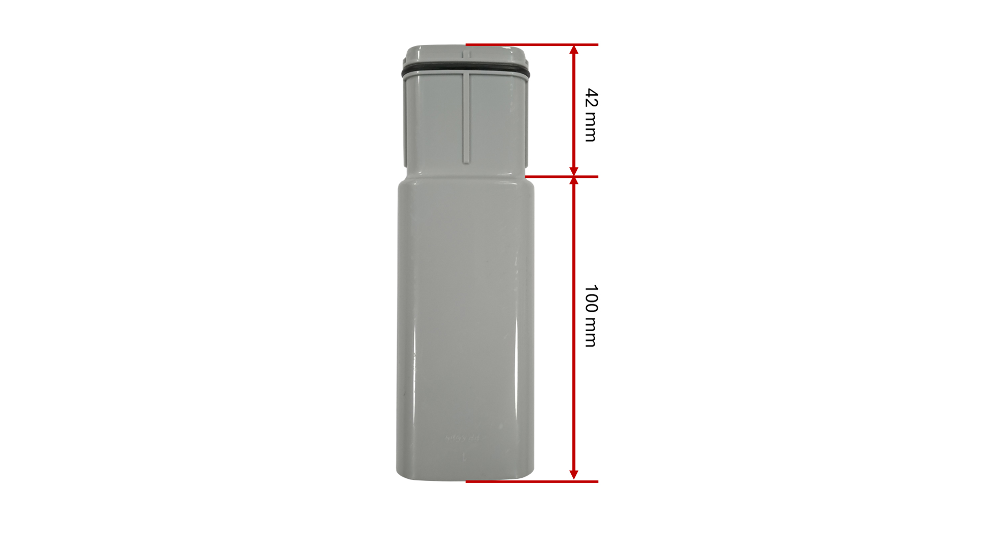 Ylivuotoputken jatko-osa, joka sopii Prevexin vesilukkoihin, jossa jäykkä ylivuotoputki.